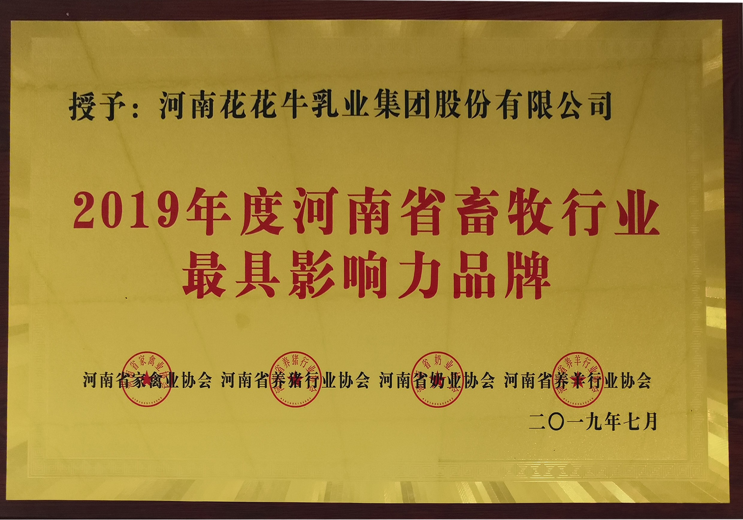 2019年度河南省畜牧行業最具影響力品牌