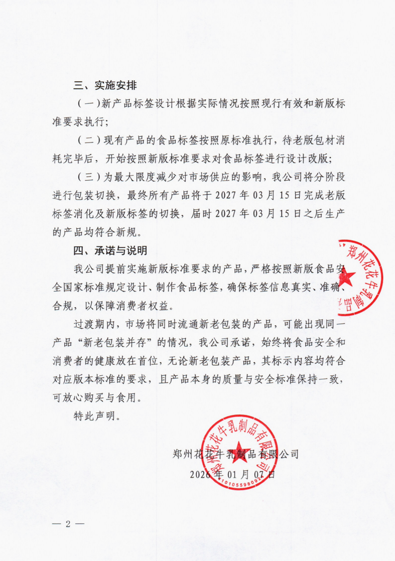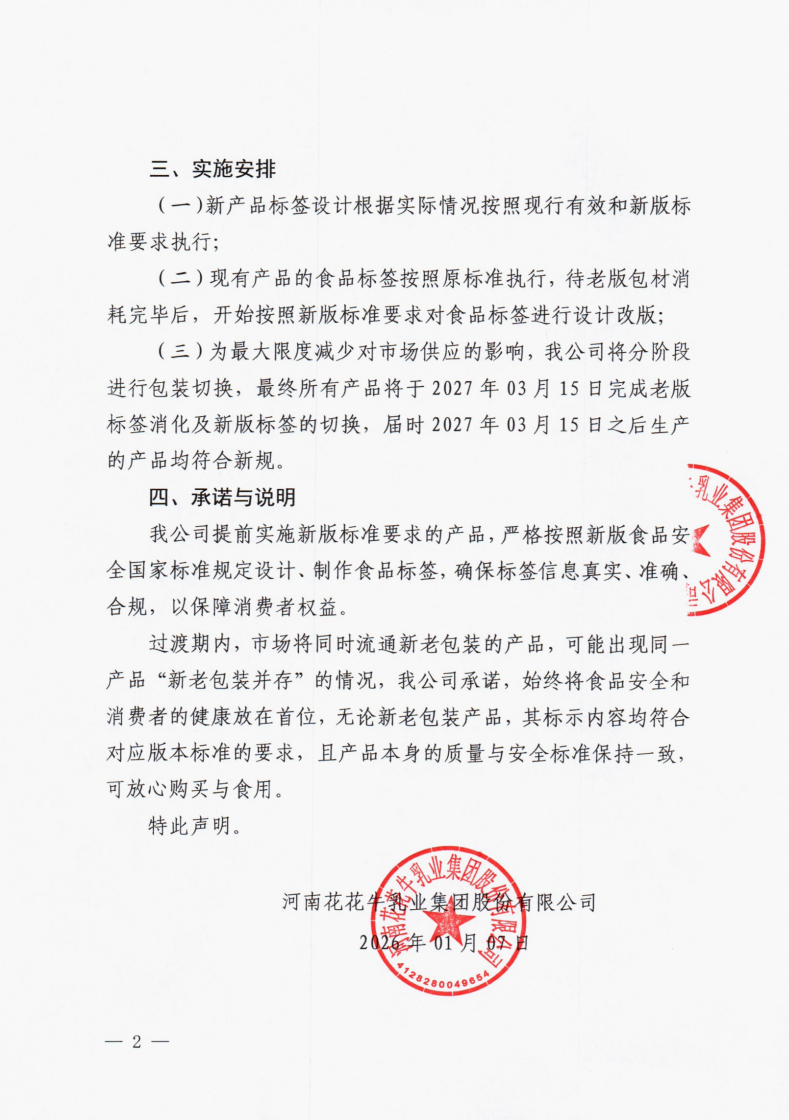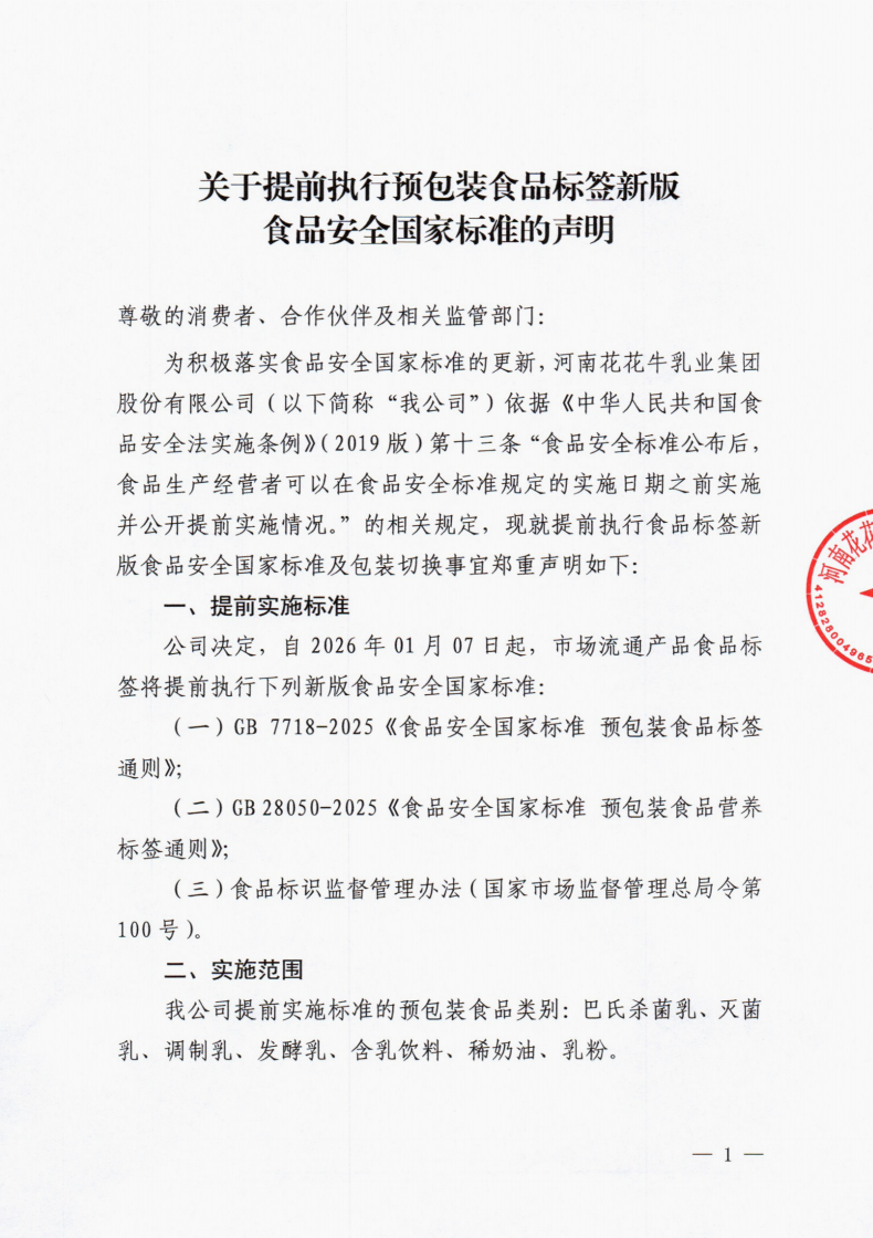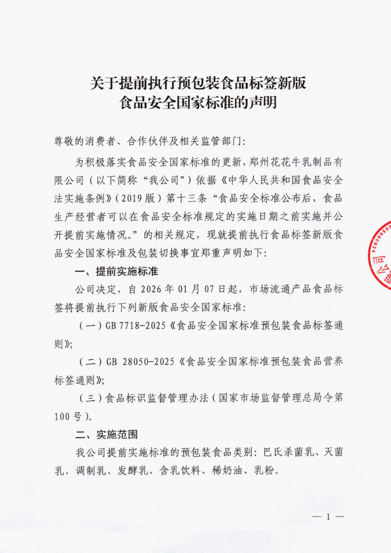 關于提前執行預包裝食品標簽新版食品安全國家標準的聲明