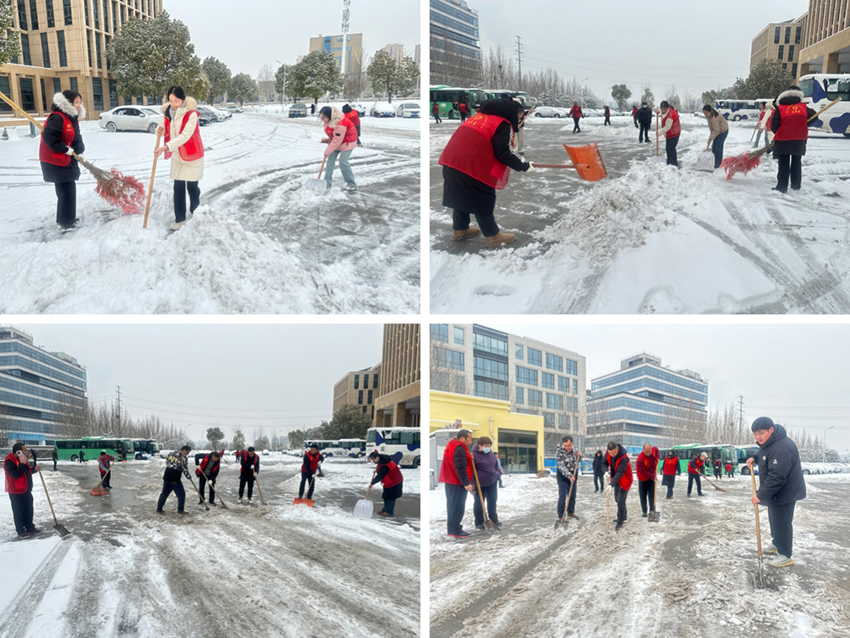 經過兩個多小時的連續奮戰,原本濕滑難行的道路煥然一新,辦公樓出入口、人行通道等關鍵點位全部暢通無阻,有效消除了安全隱患,為全體員工筑起一道堅實的“紅色安全屏障”。在集團黨委的號召下,各分子公司黨支部也分別組織開展除雪作業,確保責任區域的安全。大家用實際行動詮釋了奉獻與擔當,讓鮮紅的黨旗在清雪一線高高飄揚,也為企業寒冬里的安全生產和有序運行提供了堅實保障。